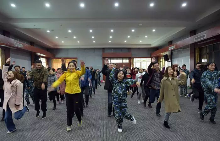 我們一齊圍成一個(gè)圈,互相拍拍肩、捶捶背,認(rèn)識(shí)熟悉,鼓勁加油。玩兒個(gè)“聽口令”的小游戲,被抓到的同志可是要上臺(tái)表演節(jié)目呢!